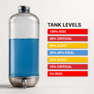 Designed for operators, maintenance teams, and service engineers, the dashboards provide real-time monitoring of tank levels across distributed tanks and sites through a centralized platform view, with drill‑down access to site-specific tank dashboards for detailed trend analysis and performance insights.